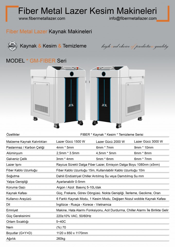 Fiber Metal Lazer Kesim, Kaynak, Temizleme Lazerleri.