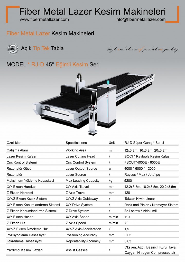 Lazer Gücü: 4Kw, 6Kw, 12Kw