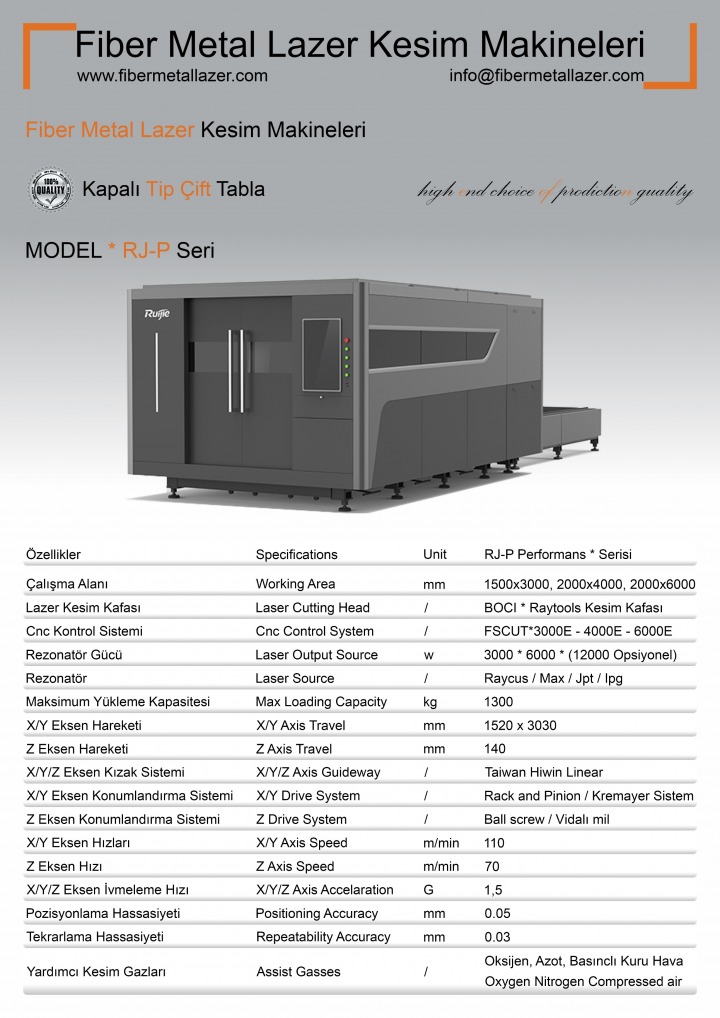 RUIJIE P Performans Seri Model Fiber Metal Lazer Kesim Makinesinin Konfigürasyonu