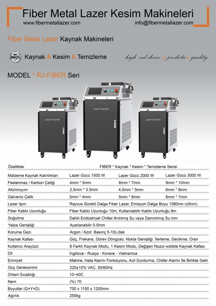 Fiber Metal Lazer Kesim, Kaynak, Temizleme Lazerleri.